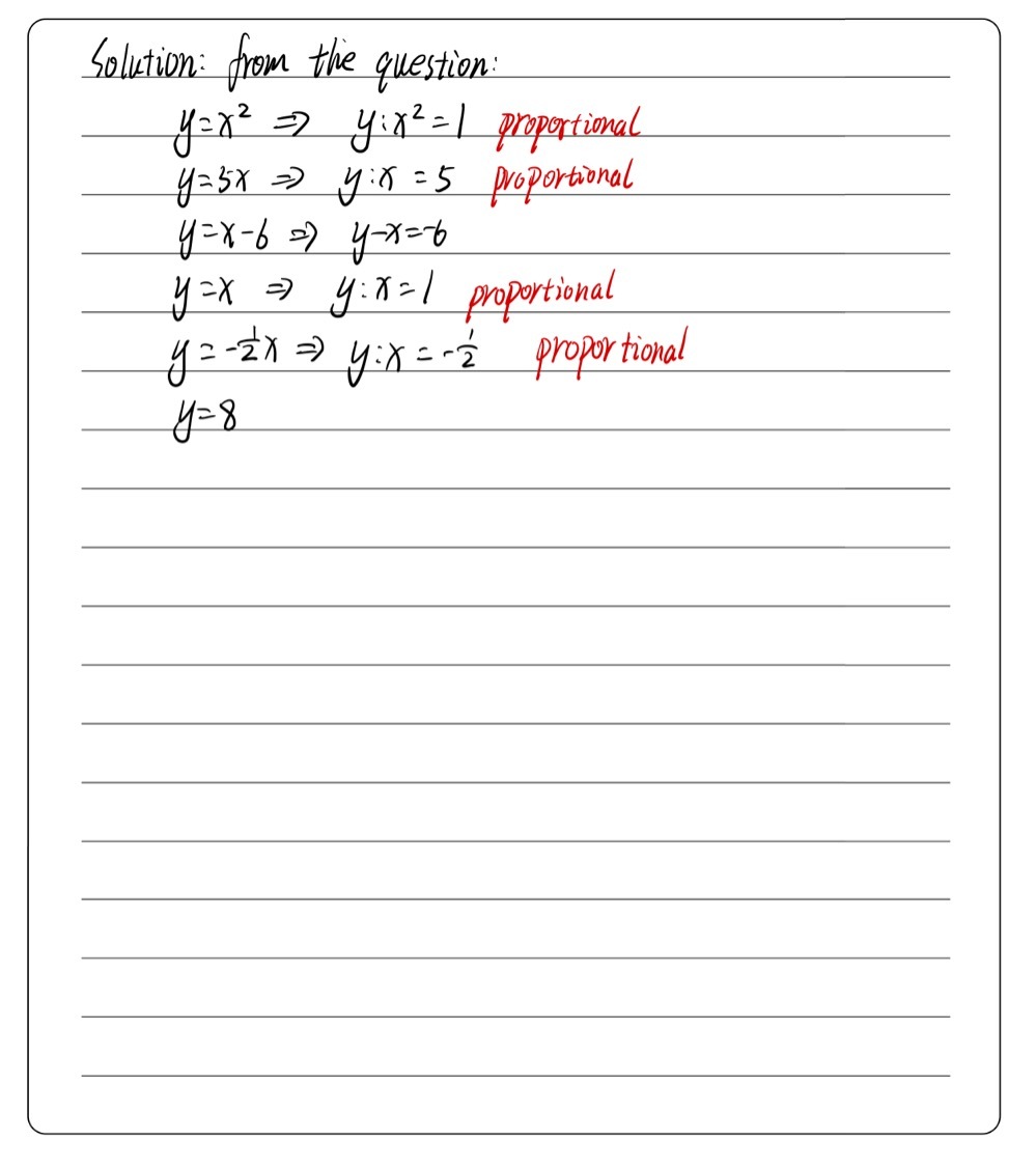 How much will the dry cleaner charge for 11 pairs of pants? This proportional relationship can be written in the form y=kx. I am not sure but this is a example step 1) proportional quantities have a constant ratio and can be described by the equation y = kx, where k is a constant ratio. Being able to write an equation from a real life situation is a valuable skill. Create your own word problem and solve it that involves one of the following: